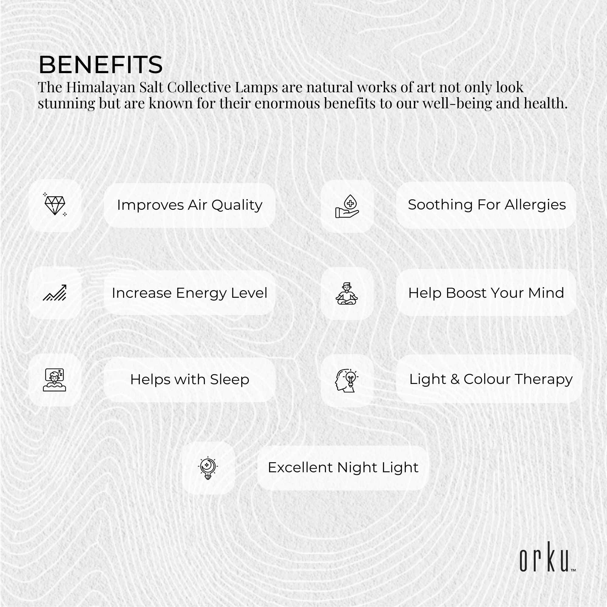 The soothing glow and striking shapes of our Himalayan Rock Salt Lamps will enhance the décor of any room. These natural works of art not only look stunning but are known for their enormous benefits to our wellbeing and health.